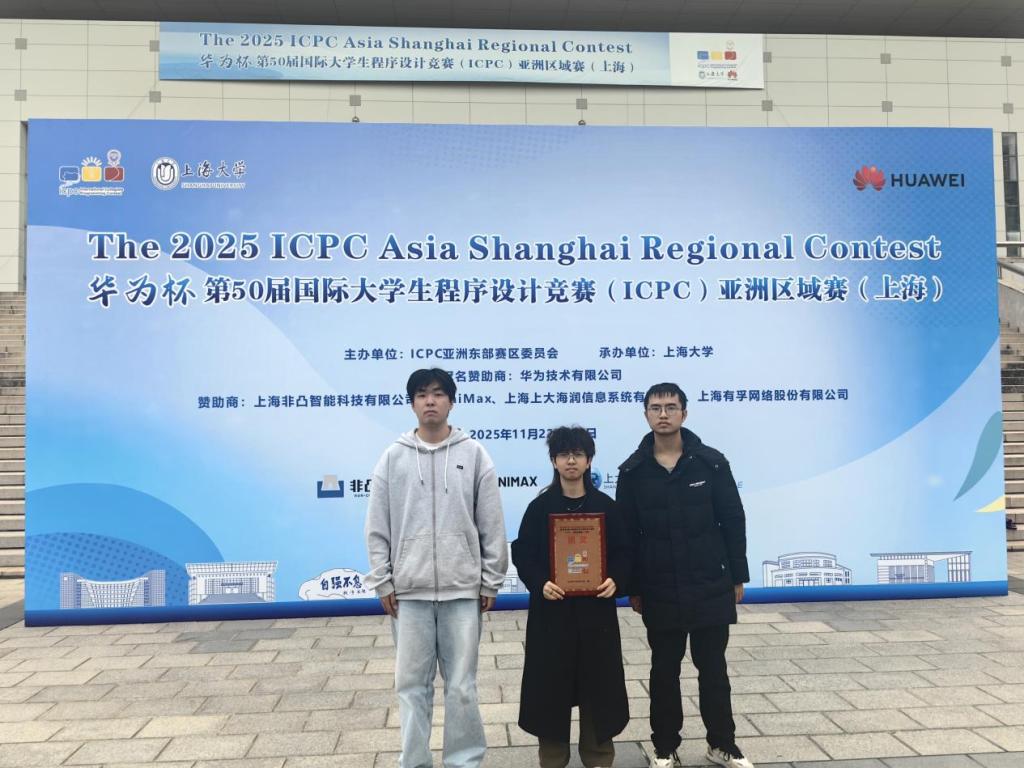 11月23日,第50届ICPC国际大学生程序设计竞赛亚洲区域赛(上海)在上海市上海大学举行。经过激烈角逐,计算机学院(人工智能学院)学子获得一枚铜奖。