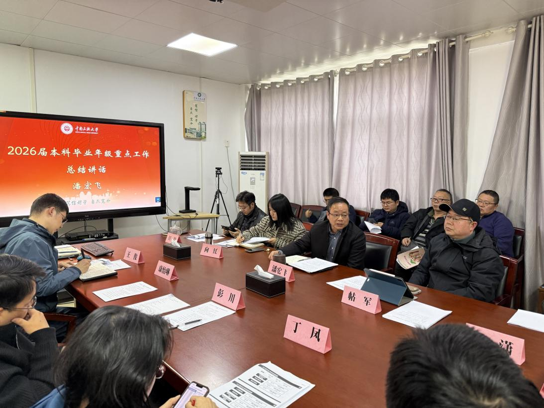 随后,学院领导结合分管工作,对毕业实习、毕业设计、升学就业等核心任务进行专项部署。张潇聚焦毕业实习与毕业设计两大关键环节,明确要求各班导师做好实习摸排建账,做到底数清、情况明,严格审核实习材料把好入口关,强化实习过程管理与安全风险防控;在毕业设计工作上,需精准匹配指导教师,抓实开题任务落实,常态化跟进学生阶段性任务完成情况,重点帮扶毕业设计有困难的学生,做好材料归档与内控工作。同时强调,学院作为 2025 届毕业生毕业论文教育部抽检单位,需坚决杜绝同类问题再次发生,严把论文质量关,且要规范科研与实习实践经费使用,确保经费投入见实效。