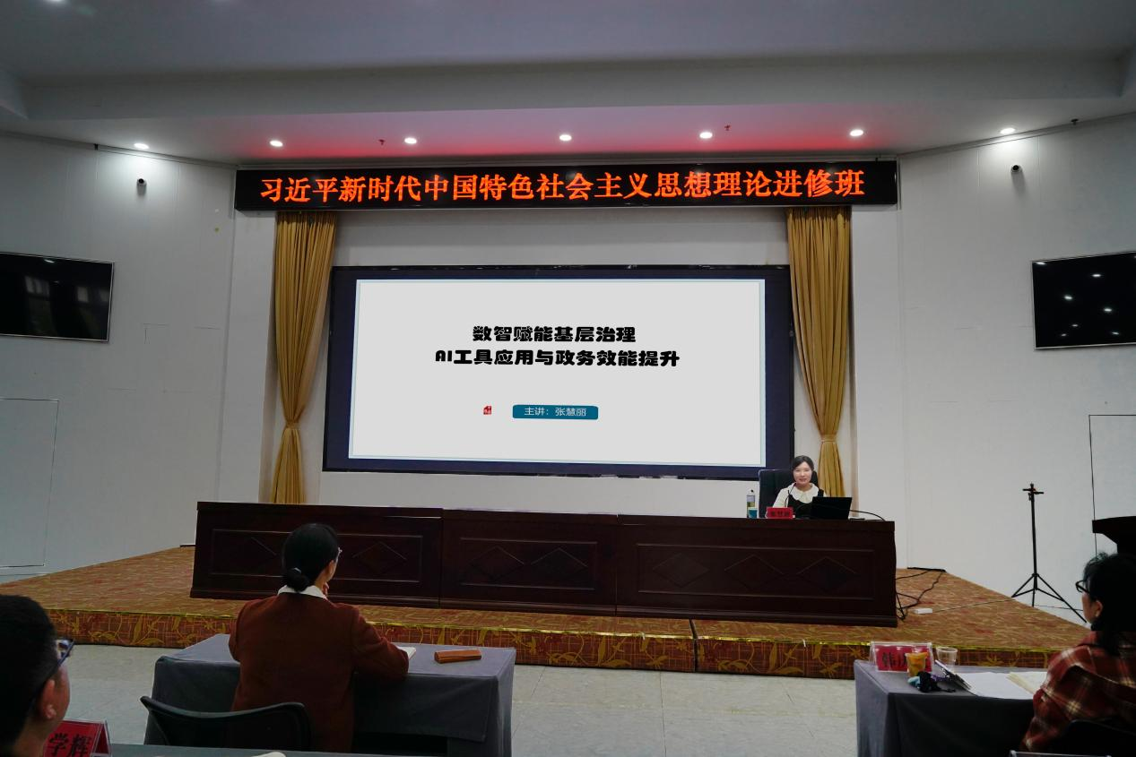 3月27日,来凤县习近平新时代中国特色社会主义思想理论进修班在旧司农园举行。应来凤县委党校邀请,我校计算机学院(人工智能学院)教师张慧丽为全县乡科级干部作题为《数智赋能基层治理——AI工具应用与政务效能提升》的专题辅导。来自全县各乡镇、县直部门的50余名乡科级干部参加培训。