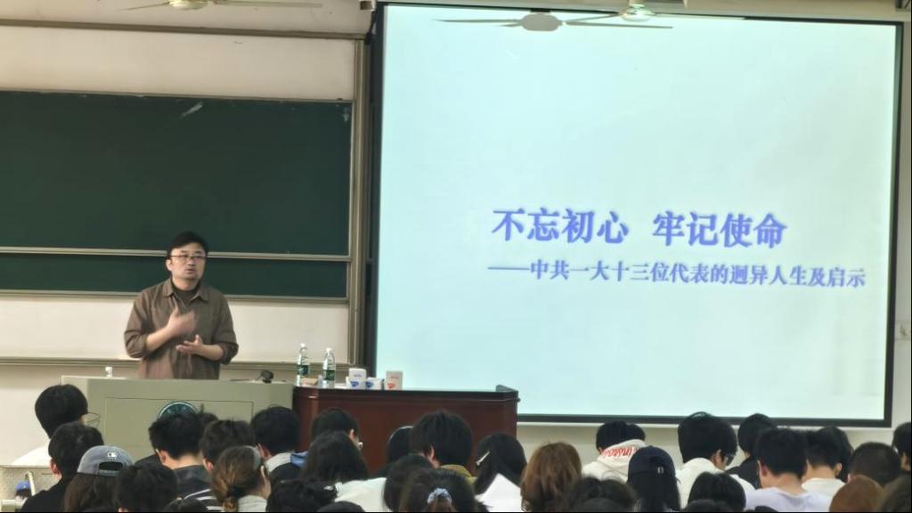 就业与校友工作处副处长朱军以《不忘初心牢记使命——中共一大十三位代表的迥异人生及启示》为题讲授专题党课。他从中共一大十三位代表的迥异人生入手,围绕入党动机、党员标准、成长路径等核心内容展开,系统讲解了申请入党、接受培养、成为党员的全流程要求,深刻阐明了“思想上入党”比“组织上入党”更重要。他结合新时代青年的成长特点,引导学员对照党员标准检视自身不足,从思想淬炼、理论学习、实践锻炼等方面明确努力方向,勉励大家以实际行动争取早日成为一名合格共产党员,在日常学习生活中发挥先锋模范作用。