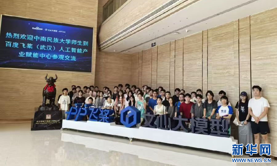图为学院人工智能专业学生前往百度飞桨赋能中心学习 中南民族大学供图