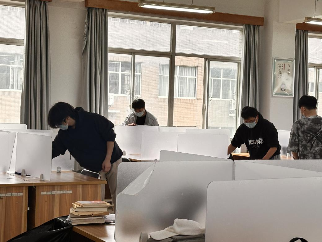 活动当天,入党积极分子和学生党员分组协作,各司其职。杂物清理组细致清理室内废弃纸张、纸箱等无用物品,清运堆积垃圾,让自习室空间更通透;擦拭组认真擦拭桌面、柜子、门窗及窗台,清除桌面涂鸦与墙面污渍,不放过任何卫生死角;扫地、拖地组对地面进行全面清扫、拖拭,从角落到过道层层清洁,并统一规整桌椅摆放,让自习室布局更井然有序。志愿者们认真负责的态度完成每一项工作,同时做好清扫工具归位、基础物资摆放等细节,让原本杂乱的自习室焕然一新,为考研学子打造出可直接使用、舒适便捷的专属备考空间。据悉,计算机学院(人工智能学院)也将出台《考研自习室座位管理办法》,进一步规定自习室的考勤、座位预定和使用规范,并安排党员负责统一管理。同时针对考研学生提出的硬件设备老化、维护等问题进行常态化后勤保障服务,助力考研学子安心备考,解决后顾之忧。