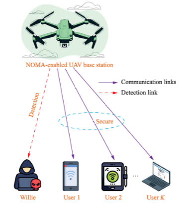 林士胜以核心成员身份参与研究的论文“Secure and robust power allocation for covert UAV-aided IoT networks using NOMA”(发表于Chinese Journal of Aeronautics),聚焦无人机辅助物联网网络的安全与可靠性难题。针对信道状态信息不完美、存在潜在窃听者的场景,提出最优功率分配算法,有效提升了无人机辅助系统的隐蔽通信能力与稳健性,为物联网安全通信提供了新方案(如图1)。
