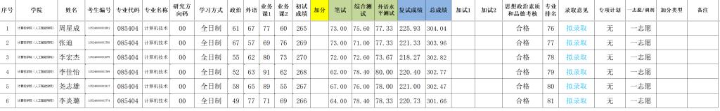 计算机学院(人工智能学院)2026年硕士研究生招生拟递补录取名单