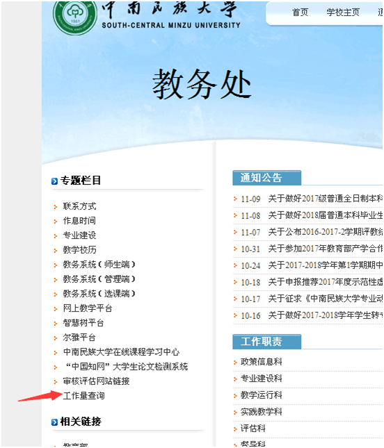 2、个人工作量查询,请登录教务处主页,点击“工作量查询”http://210.42.144.70/pjcx/login.aspx;