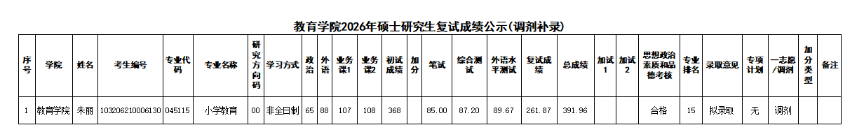 教育学院2026年硕士研究生复试成绩公示(调剂补录)