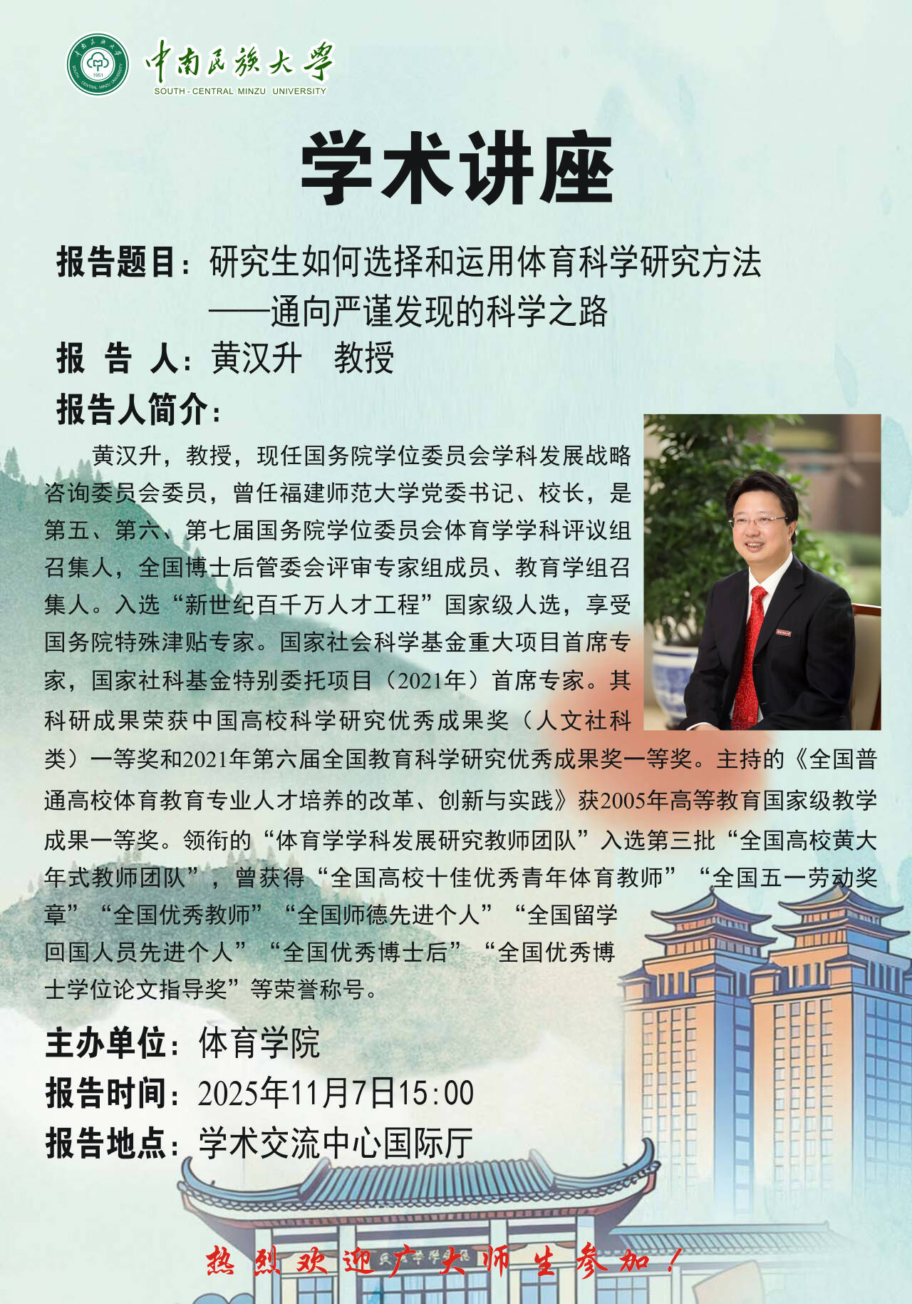 【学术预告】研究生如何选择和运用体育科学研究方法——通向严谨发现的科学之路