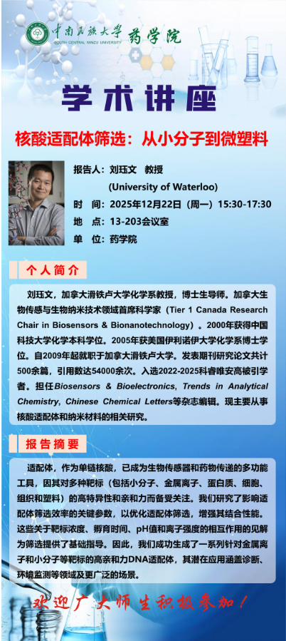 【学术预告】核酸适配体筛选:从小分子到微塑料