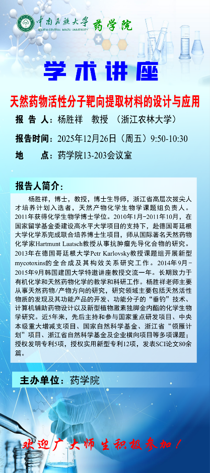 【学术预告】天然药物活性分子靶向提取材料的设计与应用