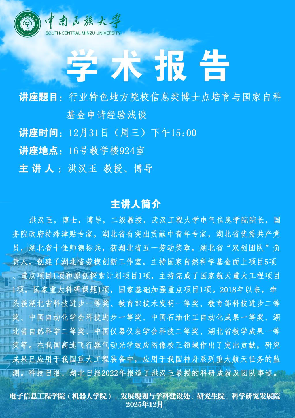 【学术预告】行业特色地方院校信息类博士点培育与国家自科基金申请经验浅谈