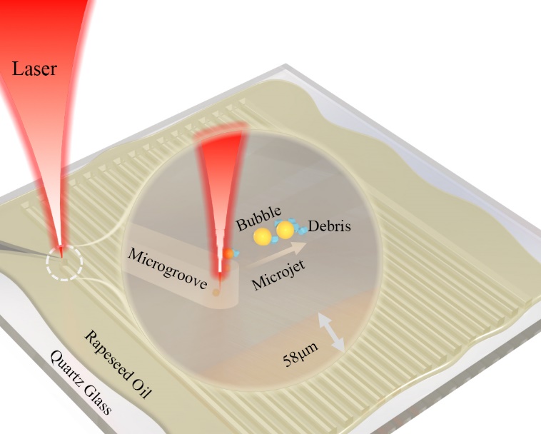 飞秒激光微加工技术以其高精度和低热效应的优势,已成为微通道、微孔和芯片实验室等领域的重要加工手段。然而,激光加工过程中产生的重铸层、剥蚀碎片再沉积、相变和裂纹等问题,一直是制约加工质量提升的瓶颈。液体辅助激光蚀刻技术虽然能够有效减少热影响区和局部机械应力,但传统水基液体在加工过程中会产生大量气泡,导致能量利用效率低下和表面质量差。