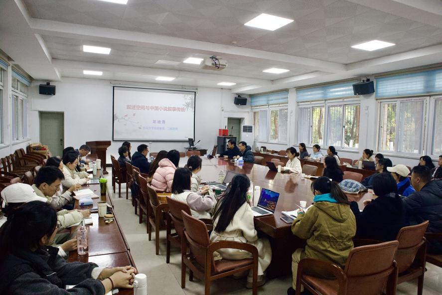 在讲座的互动环节,师生围绕空间叙事理论的应用路径及具体空间意象的作用展开探讨。提问涉及图像记忆研究、“豆棚”意象的多重意涵、口头文学中的空间层叠等具体问题,龙教授耐心解答。他表示,相关研究应当基于具体文本或特定方法,梳理其中的空间逻辑与分析框架。例如现代技术视角与文化研究角度均可纳入空间分析之中,而中国古典小说常借助真实元素平衡虚构叙事,这一特点既符合大众认知习惯,也深刻契合传统文化内在逻辑。