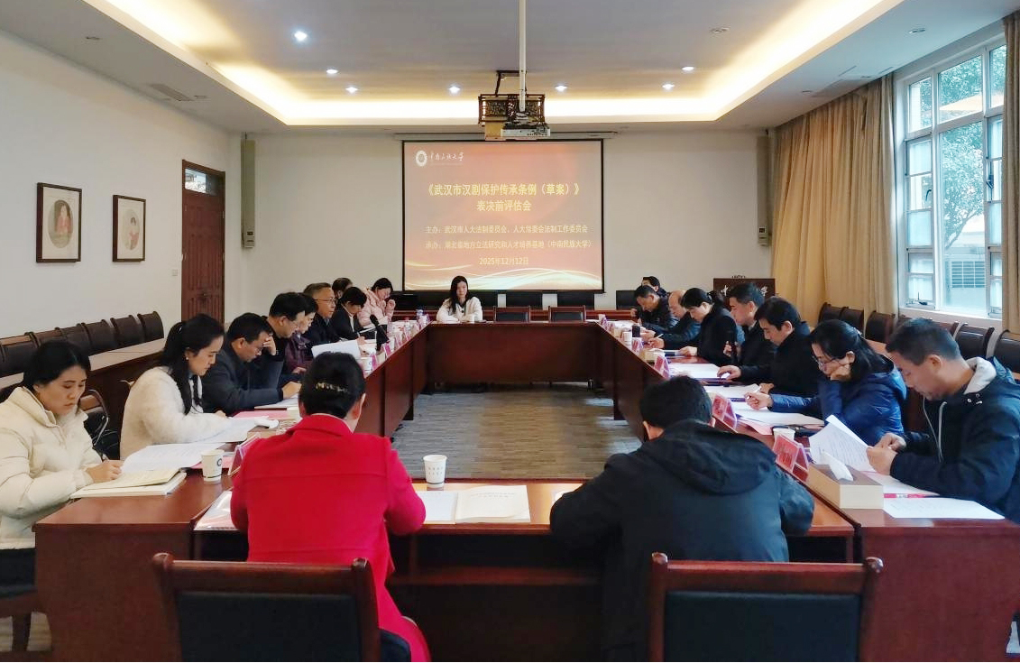 12月12日下午,《武汉市汉剧保护传承条例(草案表决建议稿)》(简称《条例(草案表决建议稿)》)论证评估会在我校国际学术会议中心举行。