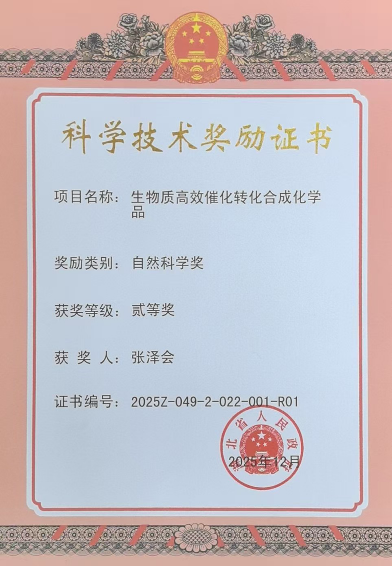 1月4日,湖北省科技创新大会召开,会上公布了《湖北省人民政府关于2025年度湖北省科学技术奖励的决定》。我校化学与材料科学学院张泽会教授团队荣获2025年度湖北省自然科学奖二等奖。