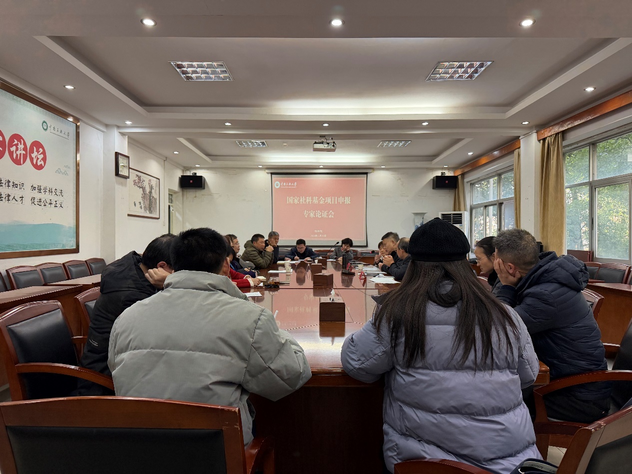 为全面提升国家社科基金项目申报质量,精准把握选题方向与论证逻辑,法学院于1月10日举办国家社科基金项目申报专家论证会。会议特邀广州大学张泽涛教授、中南财经政法大学黄玉烨教授与徐伟功教授担任指导专家。法学院院长潘红祥主持会议,党委书记邓行及全体拟申报教师参会。