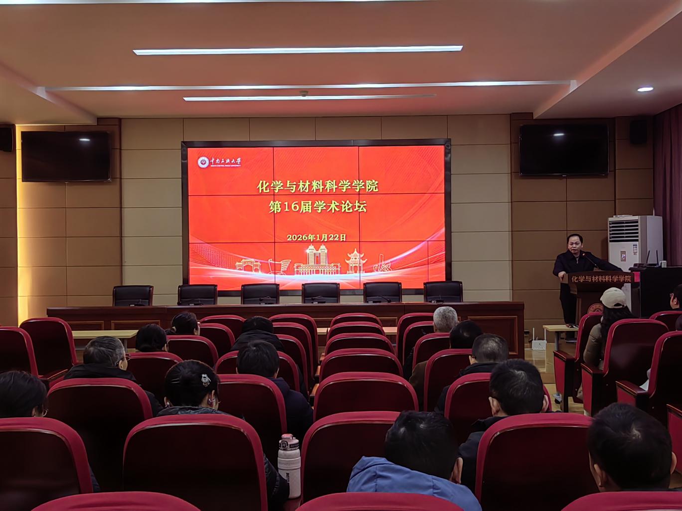 2026年1月22日,化学与材料科学学院第16届学术论坛在学院学术报告厅顺利召开。论坛分上下半场举行,分别由王立副院长、李琳副院长主持,学院师生积极参会。本次论坛汇聚全院科研力量,12个科研团队集中汇报最新研究成果,4位国家自然科学基金项目获得者分享申报经验,为师生搭建了高效的学术交流与思想碰撞平台。