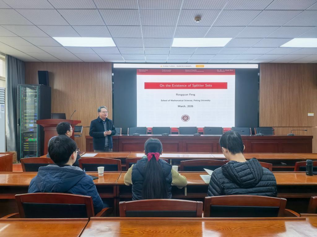 2026年3月20日上午,北京大学数学科学学院冯荣权教授应邀到访数学与统计学学院,作题为“On the Existence of Splitter Sets(关于分裂集的存在性)”的学术报告。学院相关专业师生到场聆听,并与冯教授展开深度学术交流。