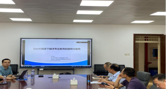 6月25日,北京外国语大学王华树教授应外语学院邀请,为外语学院教师作了一场题为“GenAI背景下翻译专业教育的困局与破局”的学术报告。本次报告由外语学院副院长李敏杰教授主持,外语学院领导及翻译系全体教师参加了此次报告。
