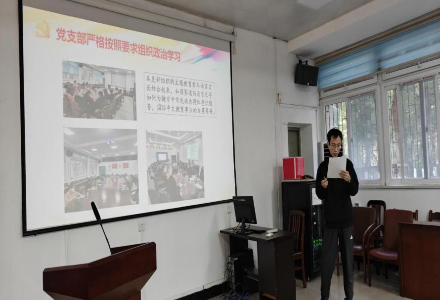会议首先听取了各支部书记现场述职。语言文化教育系党支部书记高逢亮紧扣专业特色,将党建工作与语言学教学科研及国家通用语言文字推广深度融合,在服务铸牢中华民族共同体意识上展现了学理深度与实践成效。新闻系党支部书记黄骏以入选“铸牢·创优”培育项目为契机,创新打造“党建+学术”沙龙品牌,并积极构建师生支部联动共建模式,有效增强了党建活动的专业吸引力与育人合力。中文系党支部书记邵大为立足学科传承,通过建立老中青“传帮带”机制,致力于发挥中文专业在文化浸润与筑牢思想根基中的独特作用。广告系党支部书记鲍建强以“党建+业务”融合为着力点,通过搭建科研平台、组织社会调研,有力推动了党建与服务国家战略、赋能地方发展的实践转化。随后,8名学生党支部书记围绕强化理论武装、规范组织生活、严格党员发展、促进党建与学业深度融合等方面进行述职,展现了学生党支部扎实的工作成效与蓬勃的活力。