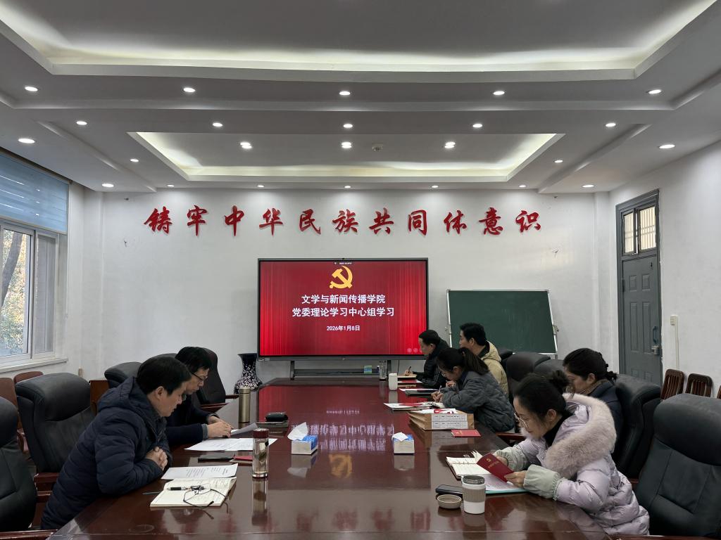 (通讯员 陈琳)1月8日,文学与新闻传播学院党委理论学习中心组举行2026年第一次集中学习,深入学习贯彻习近平新时代中国特色社会主义思想,全面贯彻落实党的二十届四中全会精神,锲而不舍落实中央八项规定精神,推进作风建设常态化长效化。会议由学院党委书记钱文彬主持。