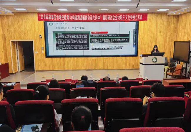 本站讯(通讯员:周依琳 摄影:周依琳)10月15日下午,“共享民族事务治理经验 助力构建澜湄国家命运共同体”国际研讨会分论坛三“文化传承与互鉴”在文一楼101会议室举行,本次分论坛由文学与新闻传播学语和外国语学院两院联合承办。论坛上半场由文学与新闻传播学院硕士生导师杜颖卉主持,文学与新闻传播学院副院长、博士生导师陈峻俊教授担任评议嘉宾。论坛下半场由外国语学院副院长、硕士生导师李明副教授主持,外国语学院副院长、硕士生导师李敏杰教授担任点评嘉宾。