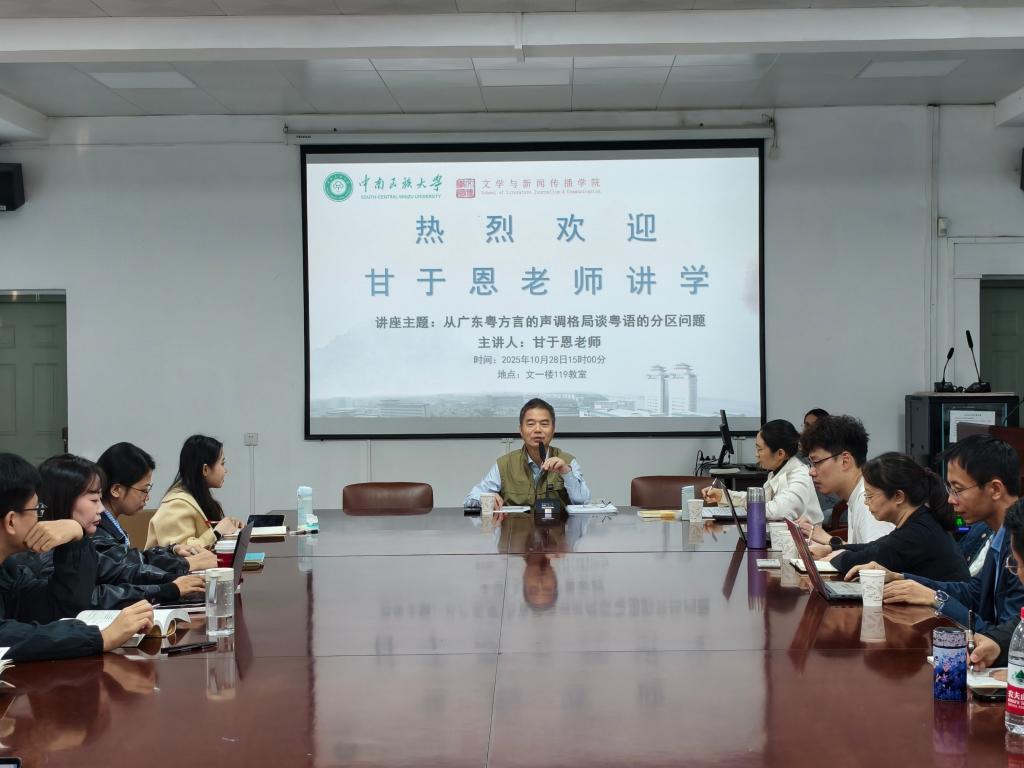本站讯(通讯员:章思雨 摄影:章思雨)10月28日下午,学院邀请暨南大学文学院教授甘于恩在文一楼119教室开展《从广东粤方言的声调格局谈粤语的分区问题》的学术讲座。讲座由熊英副教授主持,学院部分教师、硕士生参加。