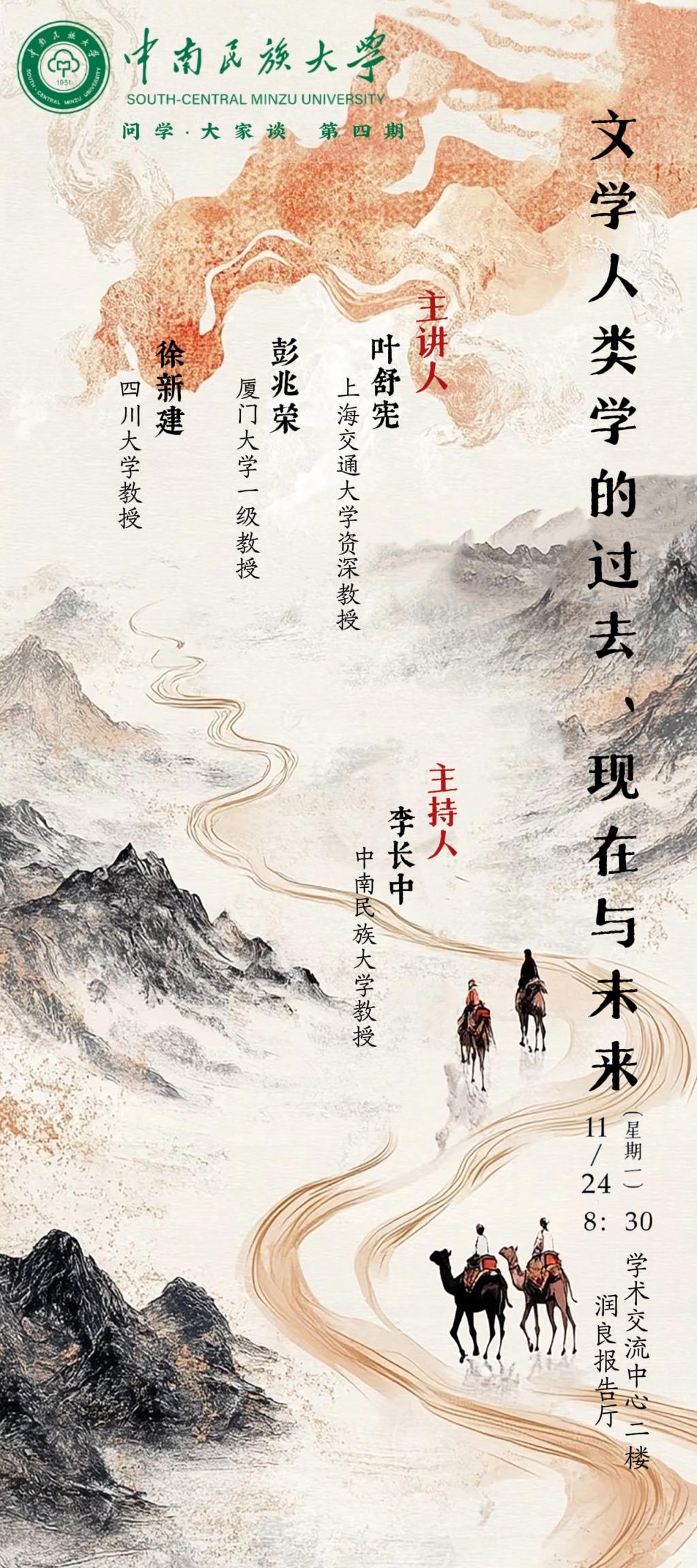 【讲座预告】叶舒宪、彭兆荣、徐新建:文学人类学的过去、现在与未来(11月24日)