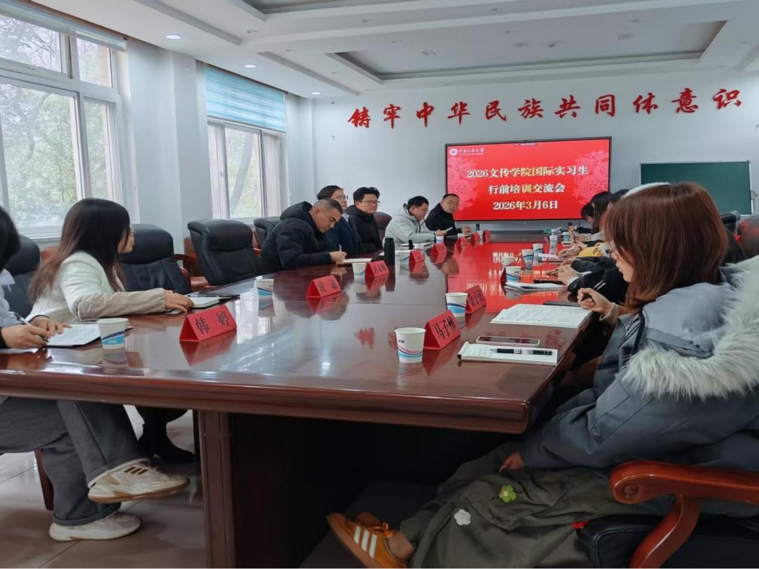 (通讯员曹宇强 高志祥)3月6日,文学与新闻传播学院在文一楼203会议室召开国际实习生行前培训交流会,文学与新闻传播学院党委书记钱文彬、党委副书记艾力亚尔•克里木、国际合作与交流处李晓辰老师、体育学院辅导员唐文翰、音乐与舞蹈学院辅导员蒋一帆、文学与新闻传播学院辅导员黄谦、韩婷、高志祥出席会议,参加本次会议的还有全体即将赴境外实习的学生。会议围绕出国(境)安全、外事纪律、实习管理等内容开展系统培训,为学生海外实习保驾护航。