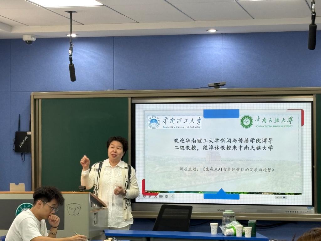 本站讯(通讯员:张从革 摄影:张从革)10月13日下午,学院邀请华南理工大学新闻与传播学院博士生导师、广东省新媒体与品牌传播创新应用重点实验室主任、广东省大数据与计算广告工程技术研究中心主任段淳林教授为大家做主题为《生成式AI智能体营销的发展与趋势》的学术讲座。此次讲座由黄迎新教授主持,学院部分教师、研究生参加。
