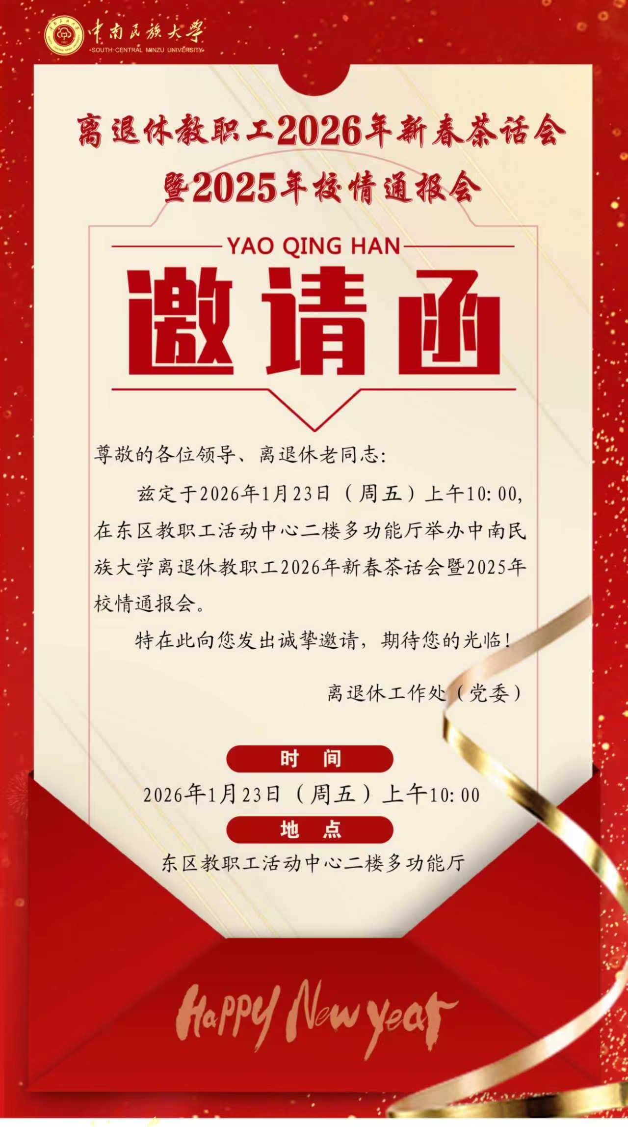 离退休教职工2026年新春茶话会暨2025年校情通报会 邀请函