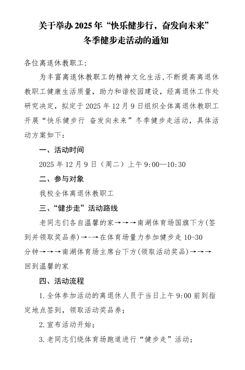 关于举办2025年“快乐健步行,奋发向未来”冬季健步走活动的通知
