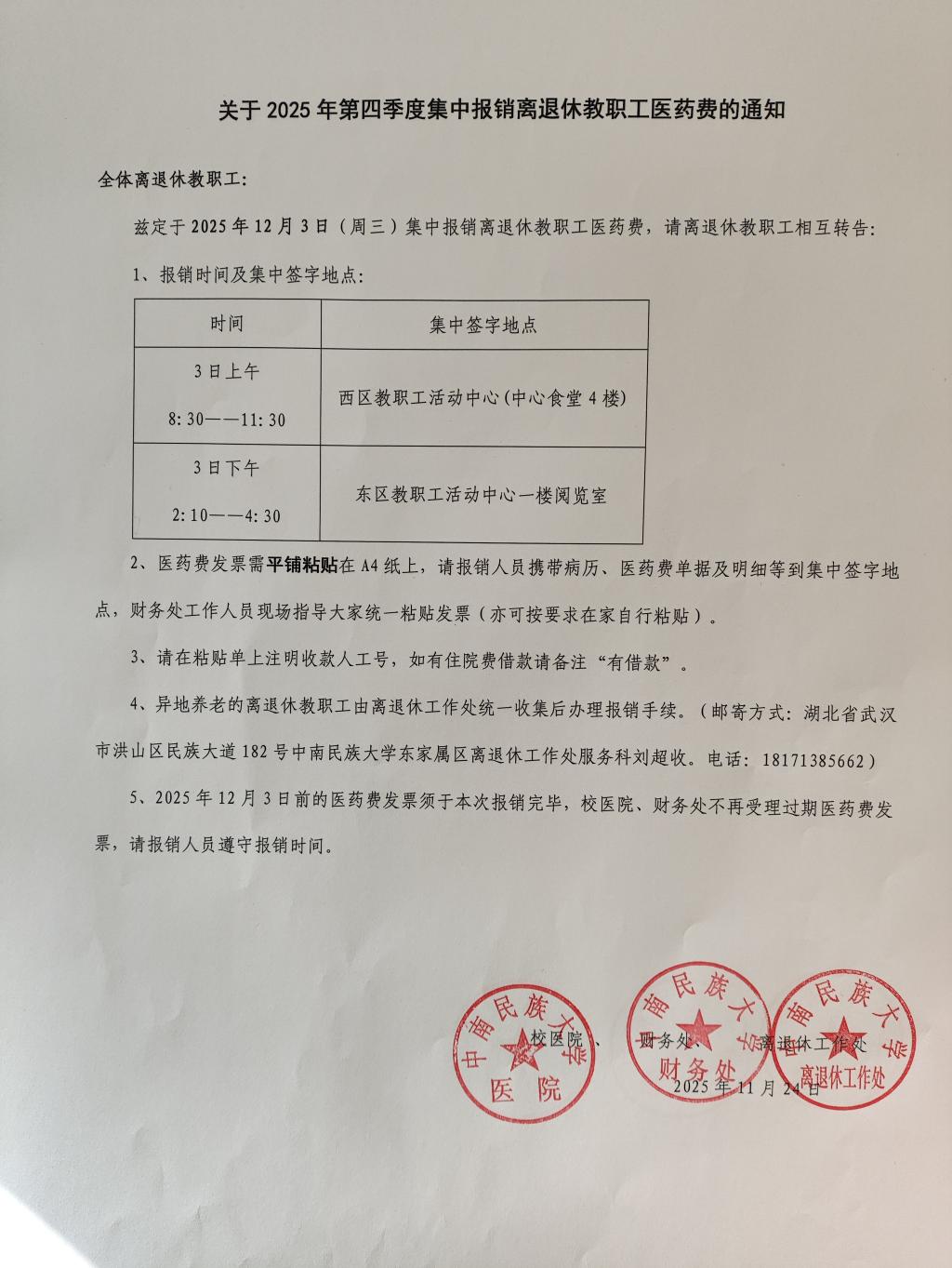 关于2025年第四季度集中报销离退休教职工医药费的通知