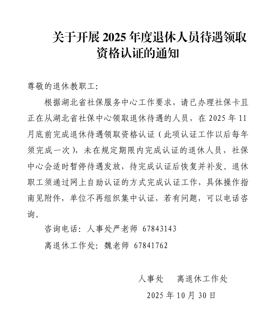 关于开展2025年度退休人员待遇领取资格认证的通知