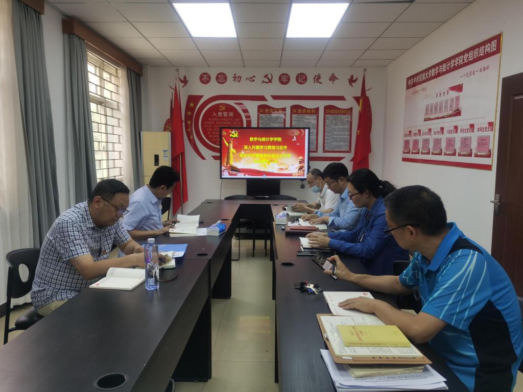 6月6日下午,数学与统计学学院党委全体委员在9号楼129会议室深入开展学习习近平新时代中国特色社会主义思想读书班第九次学习会。此次学习会由学院党委委员、副院长夏永波同志领学《习近平新时代中国特色社会主义思想学习纲要(2023 年版)》相关内容。学院党委委员参与学习。