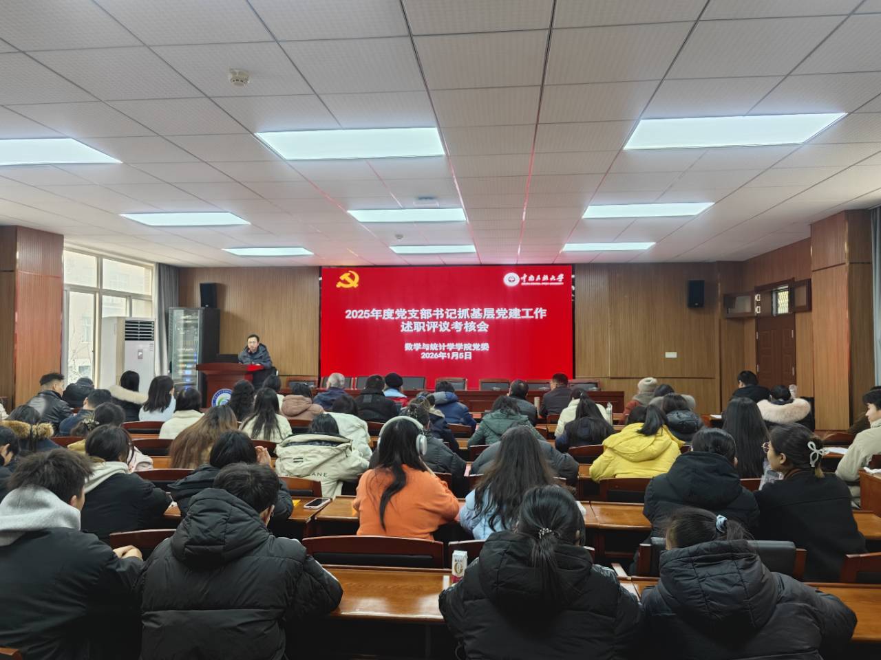 为深入学习贯彻习近平新时代中国特色社会主义思想与党的二十届四中全会精神,扎实推进基层党建工作责任制落实,全面复盘2025年度学院基层党建工作成效,科学谋划2026年党建工作重点任务,1月5日下午,我院在9-309会议室召开2025年度党支部书记抓基层党建工作述职评议考核会议。校督导组成员张宏斌、谢村,学院全体师生党员参加此次会议,会议由学院党委书记郭晖主持。