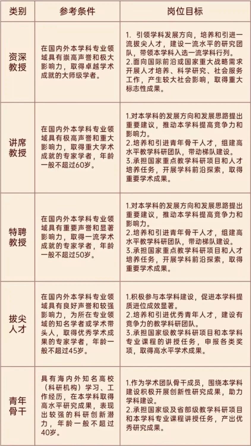 博士研究生,35岁以下(1991年1月1日以后出生);副教授,40岁以下(1986年1月1日以后出生);教授45岁以下(1981年1月1日以后出生)。学校认定的业绩特别突出的高层次人才年龄可适当放宽(1966年1月1日以后出生)。