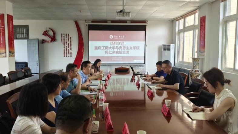 On the morning of June 16th, Chen Yanyu, the director of the Department of Situation and Policy of the School of Marxism at Chongqing Technology and Business University, and his team visited our school for an exchange and discussion. Vice President Teng Shuai of our college, Professor Zhang Taohua, the head of the "Current Situation and Policy" course teaching team, and team members Teachers Zeng Hongyu and Ma Huiling attended the symposium, which was presided over by Teng Shuai.