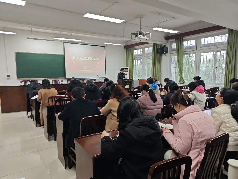 12月31日上午,我院召开全体教职工大会,集中进行政治理论学习,传达学习习近平总书记重要讲话精神和重要文章内容,部署学院近期工作。学院全体教职工参加会议,会议由院党委书记蔡琼主持。