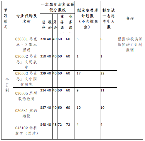 表2:各专业普通计划研究生复试分数线、拟录取计划数