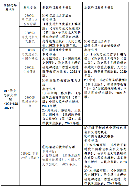 表4:马克思主义学院2026年硕士研究生复试、加试科目及参考书目