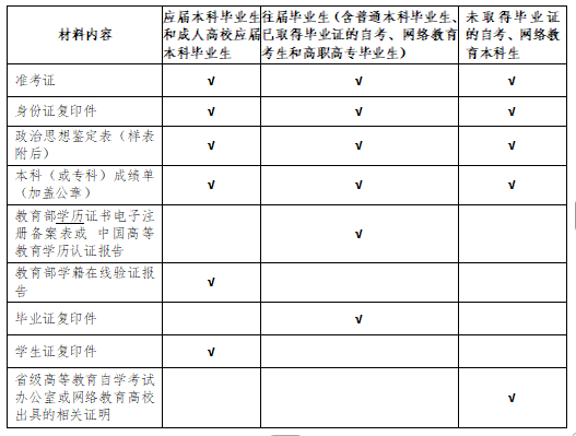 表3:不同类别的复试考生须提交的资格审查材料
