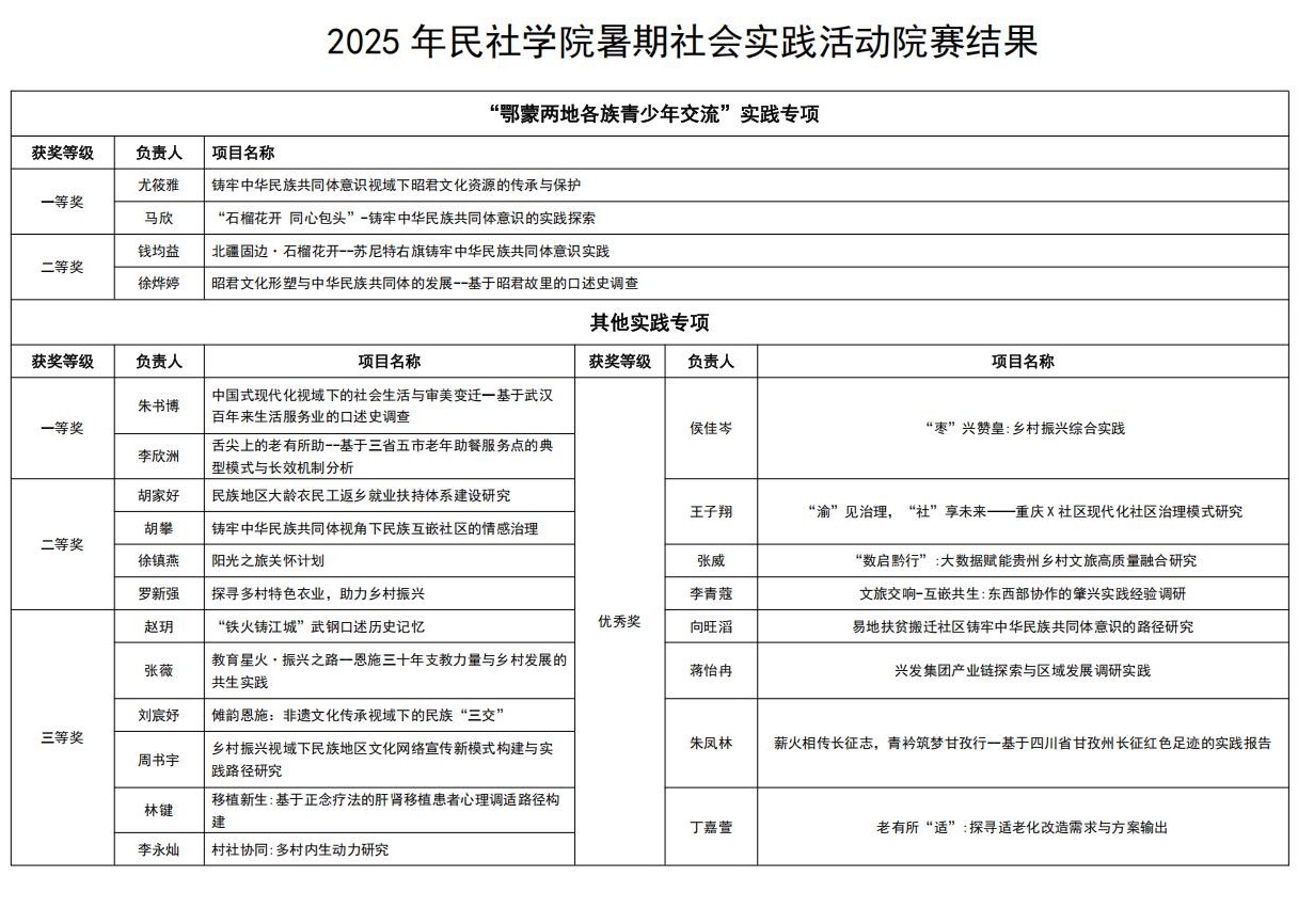 本次答辩会不仅是对学生暑期社会实践成果的检阅,更是一场集实践经验分享、学术思维碰撞与师生教学相长于一体的育人活动。未来,民社学院将持续深化实践育人体系建设,引导更多学子以社会实践为桥梁,将调研所得转化为学术探索动力,在知行合一中书写民社青年的责任与担当。