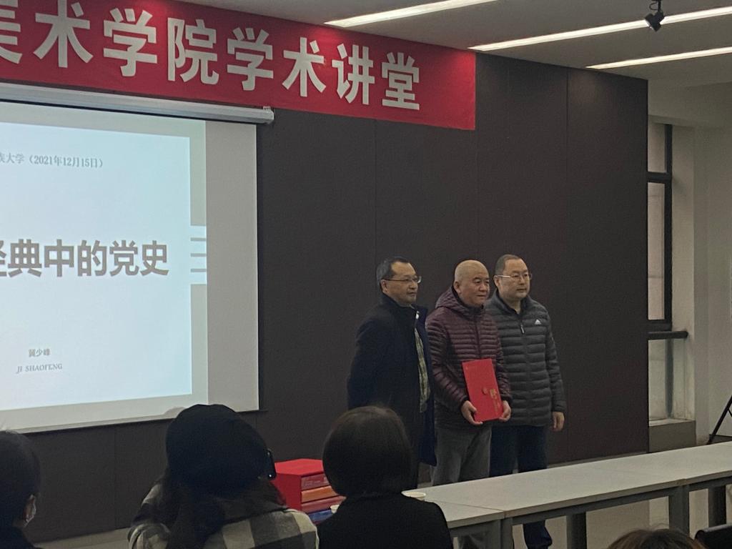 12月15日下午,湖北美术馆馆长冀少峰先生应美术学院邀请,在光谷美术馆三楼学术报告厅举办主题为《美术经典中的党史》讲座。本次讲座也是湖北美术馆“听涛讲坛”和走进高校系列讲座之一。美术学院党委书记刘子元、院长吴海广、学院老师、硕士研究生和本科生参加了这次讲座,讲座由占跃海博士做学术主持。