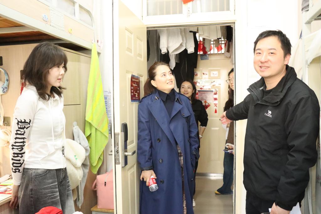 新学期伊始,为深入了解学生返校后的学习生活情况与思想动态,进一步加强师生交流,传递学院关怀与温暖,3月11日,我院党委书记谢岚、党委副书记王璐璐、学工办副主任袁磊以及2025级兼职辅导员马欣一行深入学生宿舍,开展新学期走访慰问活动。