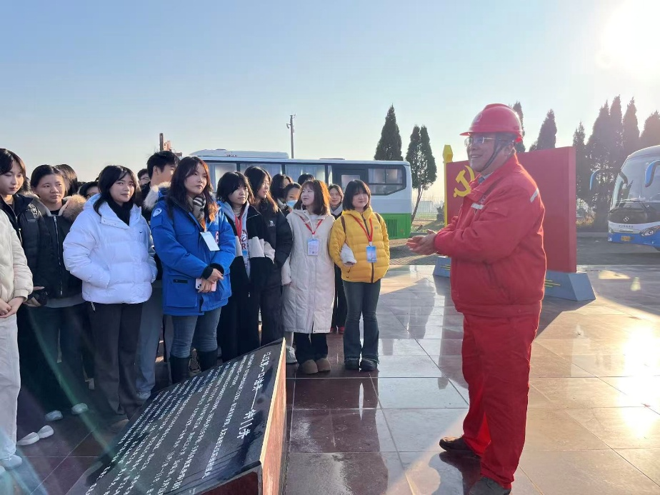 在江汉油田展览馆,同学们系统了解了江汉油田从沼泽荒滩起步、逐步发展成为我国南方重要石油勘探开发基地的艰辛历程。“几代江汉石油人栉风沐雨、拼搏奉献,将昔日的沼泽荒滩建设成中国南方重要的石油勘探开发基地,用智慧和汗水谱写出一部石油儿女自力更生、艰苦奋斗的创业史,自强不息、励精图治的奋斗史。”通过现场学习与沉浸式参观,师生们对江汉油田的历史脉络与精神品格有了更直观、更深刻的体悟。