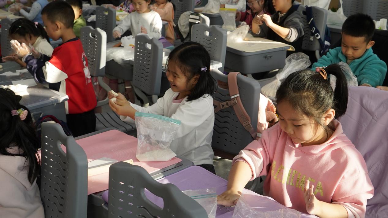 课程设计紧扣岁时节令与文化礼仪,让传统文化浸润日常教学。重阳节前后,孩子们学习制作“重阳花糕”,以面团为底,缀以红枣、葡萄干等食材,体验节令食品背后的孝亲敬老传统;临近冬至,课程又引入“南方汤圆,北方饺子”的饮食比较,学生不仅亲手包制汤圆、饺子,更通过观察馅料、闻识香气,多感官理解不同地域的饮食习俗。