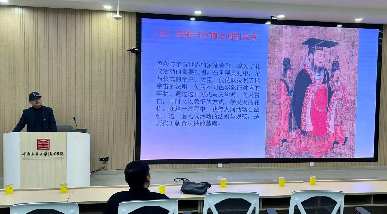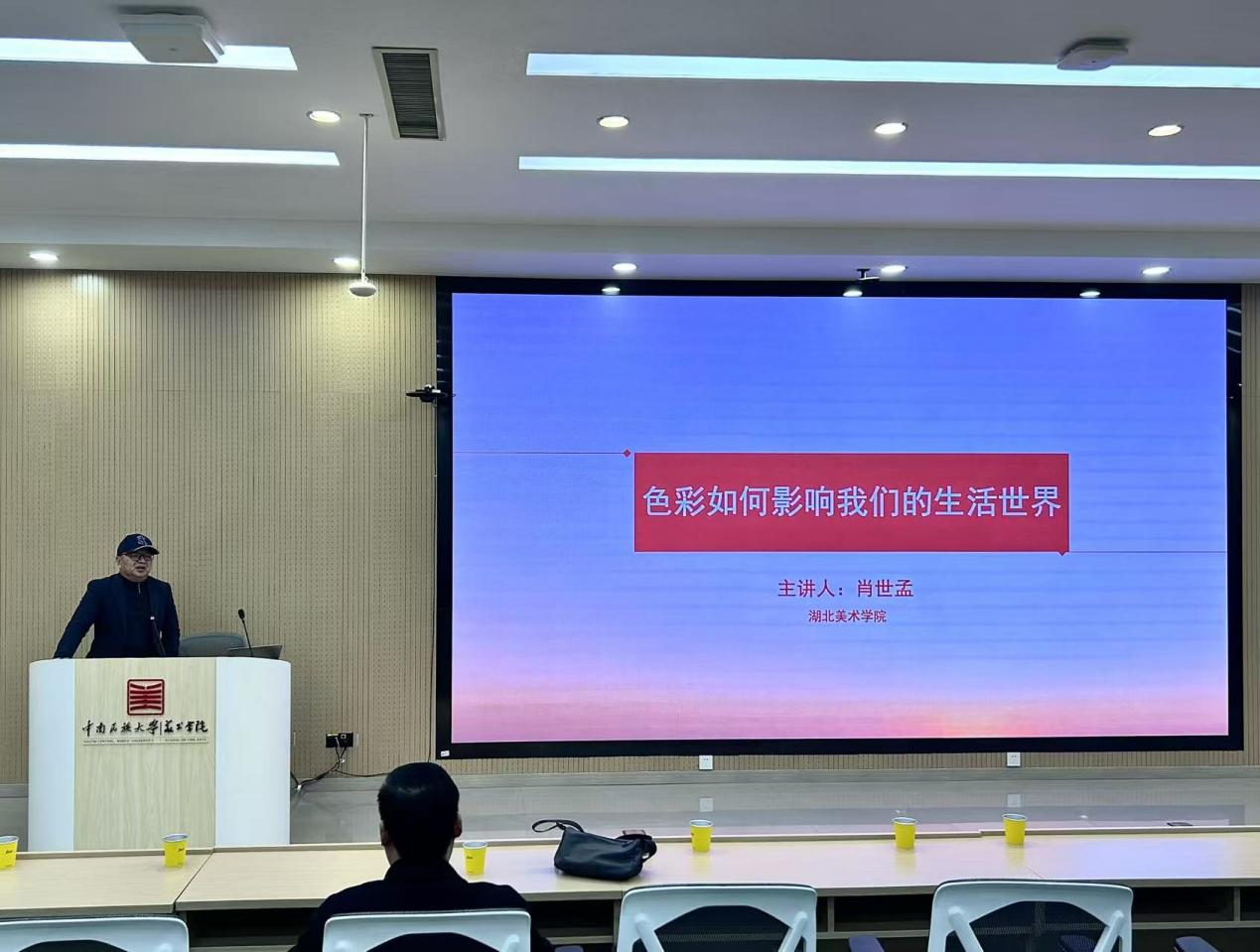 2026年3月 13 日下午,美术学院学术大讲坛在学术报告厅如期开讲。本次讲座特邀湖北美术学院中国传统色彩理论研究中心主任、湖北美术学院中国画学院肖世孟教授主讲,主题为“色彩如何影响我们的生活世界”,讲座由中南民族大学美术学院程超副院长主持。