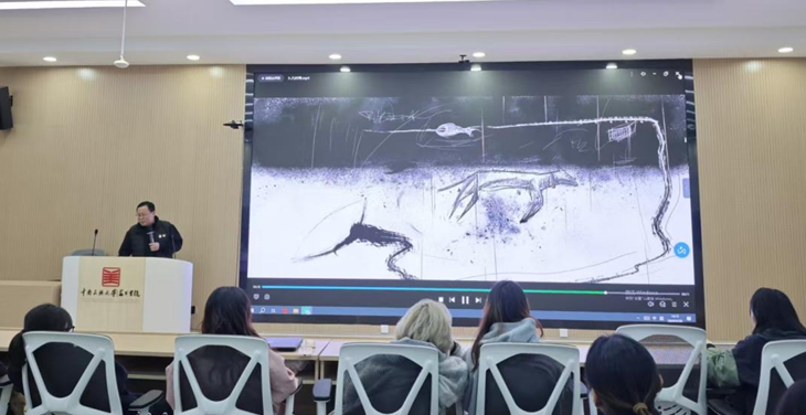 叶教授以独特的课堂组织方式点燃现场氛围,强调“艺术服务人民,首先要以人民的姿态沟通”。他结合壹葉堂数字艺术与乡村振兴原创实践,构建“民族文脉传承+人民视角表达+数字技术赋能+区域化诗意转译”一体化教学与创作体系,遵循“田野调研扎根乡土、区域美学滋养创作、数字技术活化表达、艺术作品传递乡愁”的实践路径,将民族文化、区域特色、乡土风情融入创作全过程,把成熟原创成果转化为可教学、可落地、可推广的教学模块,践行文艺赋美乡村、数字赋能乡村文化产业的发展理念与育人要求。