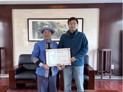 图为 李然馆长为李庆福教授颁发捐赠证书