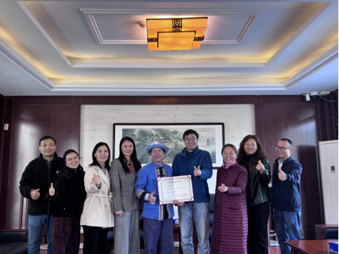 仪式最后,李然馆长为李庆福教授颁发了捐赠证书,全体与会人员合影留念,捐赠仪式圆满落幕。这批作品的入藏,不仅进一步丰富了我馆的特色馆藏体系,为研究女书活态传承提供了珍贵实物资料,未来我馆将切实做好藏品的保护与利用工作,让这份文化财富发挥更大价值。